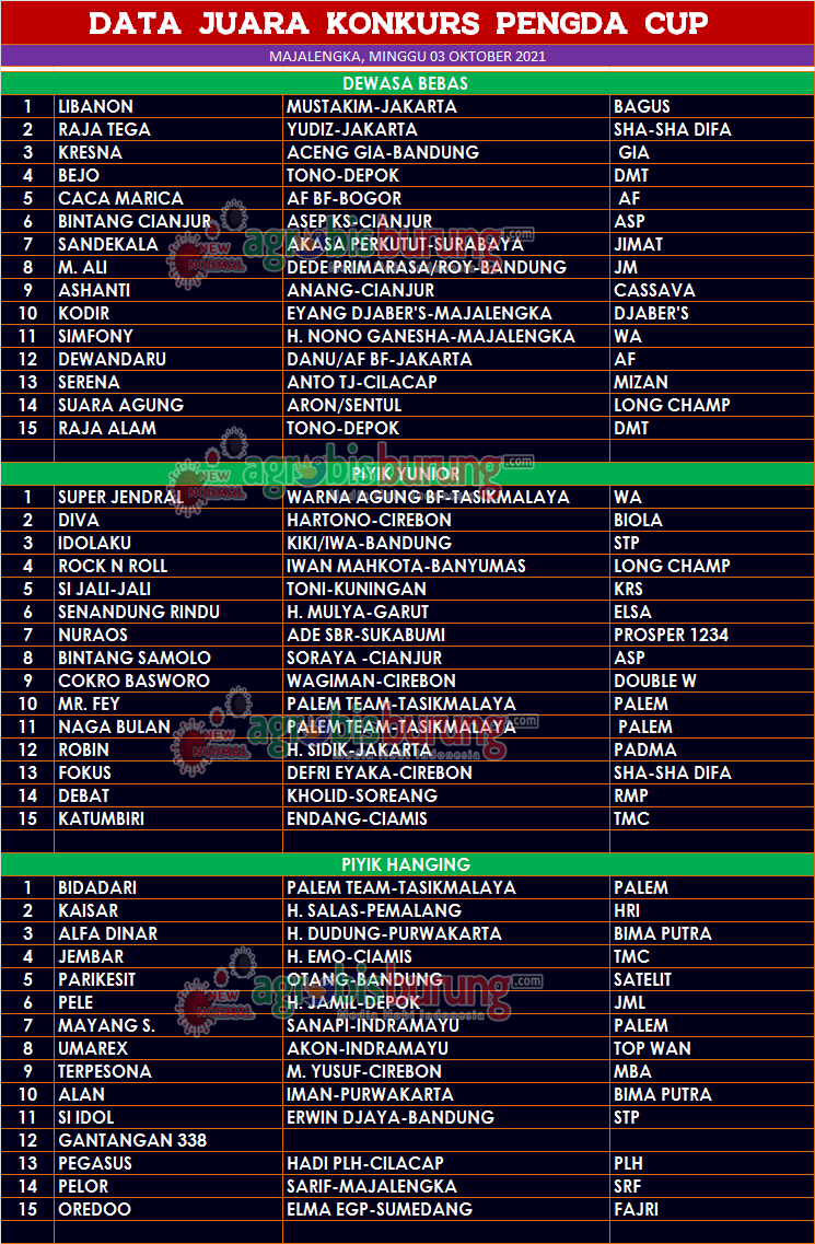 Headline Hobi Burung Juara Organizer Perkutut Perkutut Profil Data Juara Konkurs Pengda Cup di Majalengka, Minggu 03 Oktober agrobisburung 3 Oktober 2021 MAJALENGKA, agrobisburung.com – Data Juara Konkurs Pengda Cup di Majalengka, Minggu 03 Oktober Tinggalkan Komentar Post navigation Previous: Data Juara Latber Panarukan Cup 2021 di Situbondo, Minggu 03 OktoberNext: Data Juara Latihan Dinilai Shasha Bf di Jakarta, Minggu 03 Oktober More Stories Headline Perkutut Profil Carpenter BF Mataram NTB, Kembangkan 50 Kandang Unggulan Dengan Trah Jawara agrobisburung 16 Desember 2025 Headline Perkutut Profil Satu Lagi Big Bos Asal NTB Bakal Ramaikan Perkutut Nasional 2026, Samuel BLT Arrowhead Siap Berkolaborasi HDL – Carpenter Dengan Amunisi Istimewa agrobisburung 15 Desember 2025 Headline Organizer Perkutut Hasil Rakerwil Jawa Tengah 2025 : Lanjutkan LLBJ Sebanyak 10 Putaran, Meramaikan Daerah dengan program Liga Piyik di Masing Masing Pengda agrobisburung 15 Desember 2025