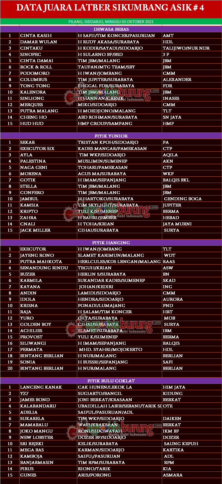 Headline Hobi Burung Juara Organizer Perkutut Perkutut Profil Data Juara Latber Si Kumbang ASIK # 4 di Pilang Sidoarjo, Minggu 03 Oktober agrobisburung 3 Oktober 2021 Kru Panitia Latber SI Kumbang ASIK SIDOARJO, agrobisburung.com – Data Juara Latber Si Kumbang ASIK # 4 di Pilang Sidoarjo, Minggu 03 Oktober Kru Panitia Latber SI Kumbang ASIK Suasana Lomba Tinggalkan Komentar Post navigation Previous: Aceng GIA BF Motor Penggerak di Bandung Selatan, Setelah Sukses Orbitkan Kresna di Garut, Adik Kresna Dipinang Dedi Exis Next: Data Juara Latber Panarukan Cup 2021 di Situbondo, Minggu 03 Oktober More Stories Headline Hobi Lain Perkutut Profil Christa Dwipa Praya NTB, Bakal Comeback Lomba Dengan Amunisi Ciamik Miliknya agrobisburung 17 Desember 2025 Headline Perkutut Profil Carpenter BF Mataram NTB, Kembangkan 50 Kandang Unggulan Dengan Trah Jawara agrobisburung 16 Desember 2025 Headline Perkutut Profil Satu Lagi Big Bos Asal NTB Bakal Ramaikan Perkutut Nasional 2026, Samuel BLT Arrowhead Siap Berkolaborasi HDL – Carpenter Dengan Amunisi Istimewa agrobisburung 15 Desember 2025