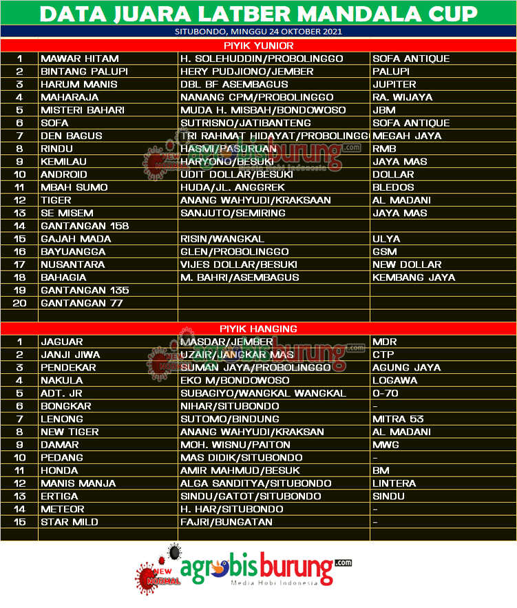 Headline Hobi Burung Juara Organizer Perkutut Perkutut Profil Data Juara Latber Mandala Cup di Situbondo, Minggu 24 Oktober agrobisburung 24 Oktober 2021 SITUBONDO, agrobisburung.com – Data Juara Latber Mandala Cup di Situbondo, Minggu 24 Oktober Tinggalkan Komentar Post navigation Previous: Data juara Toni Borju Cup 2 Feat HM Ghunter Gemparalam SE.MA di Ponorogo, Minggu 24 OktoberNext: Raja Tega, Prima Star, Wuling Ramaikan Latber KMB Cup di Bogor More Stories Headline Perkutut Profil “Double” Transaksi Spektakuler : Akhirnya Jawara Palestine Andalan H. Handang Semarang di-Take Over Hendry WAT Tasikmalaya & K-WAT Delon Dijebol Sandy ITP agrobisburung 15 Januari 2026 Headline Perkutut Profil Golsindo BF Jakarta Rilis Formasi Kandang 2026, Andalkan Materi Indukan Terbaik, Siap Cetak Perkutut Kualitas Lomba dengan Bobot Suara Istimewa agrobisburung 14 Januari 2026 Headline Perkutut Profil Nunu Depok “Turun Gunung” Langsung Borong 5 Pasang K-Unggulan WAT BF Tasikmalaya, H. Pendi Nadira Jakarta Jebol K-WAT Brahmana & BDB BF Lombok Jebol K-WAT Raja Ampat agrobisburung 13 Januari 2026