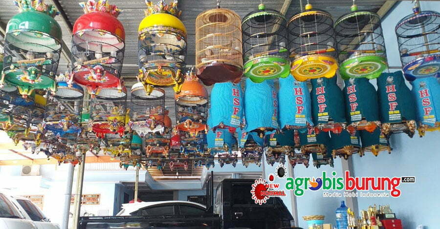 Kleksi burung lomba dan sangkarnya
