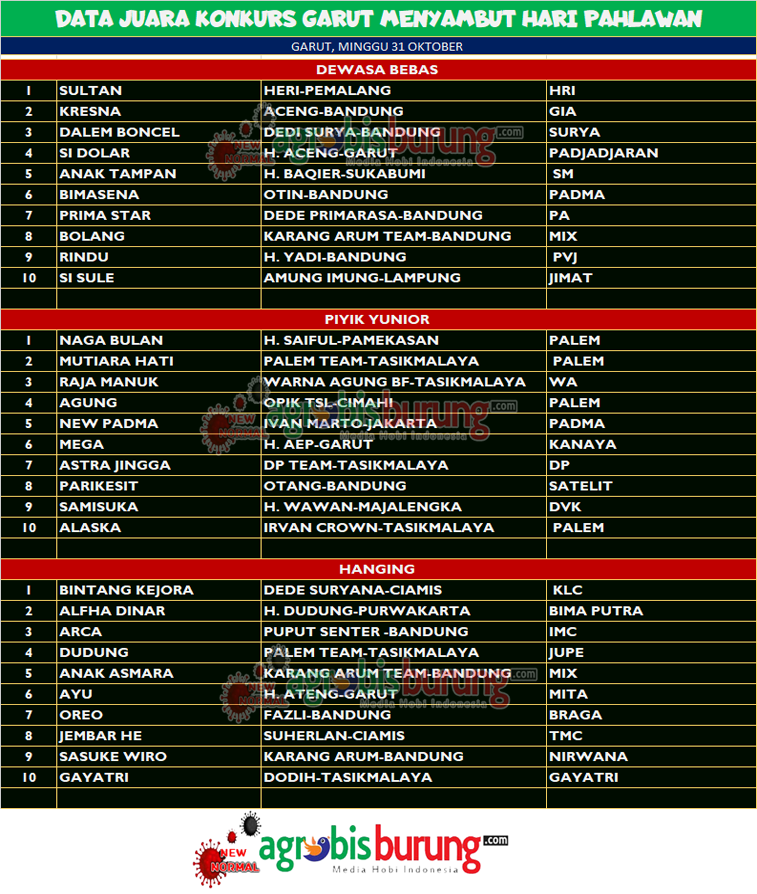 GARUT, agrobisburung.com – Data Juara Konkurs Garut Menyambut Hari Pahlawan di Garut, Minggu 31 Oktober