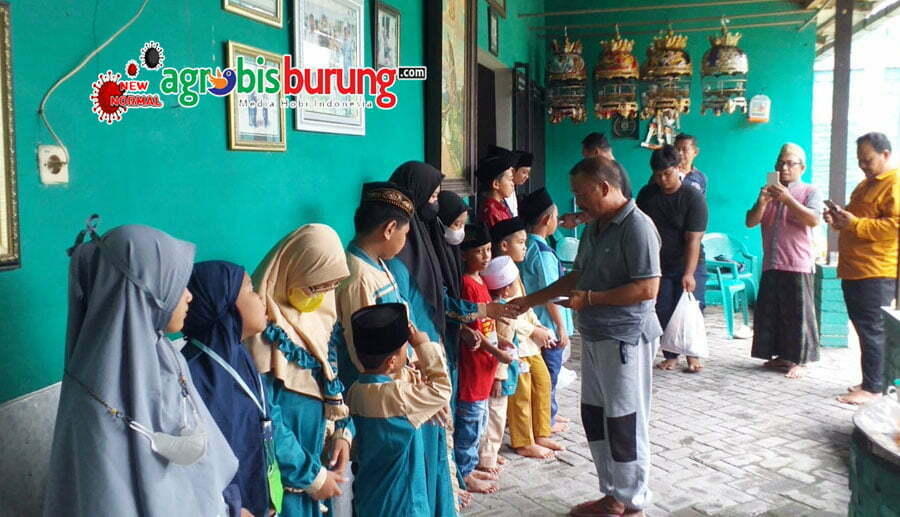 GRESIK, agrobisburung.com – Sudah menjadi tradisi buat H Cholil ketika burung burung talent yang di polesnya menang lomba dan meraih podium pertama dibuatkan acara syukuran atas nikmat kemenangan. Dan acara tersebut digandeng dengan jadwal rutin latihan bersama di markas HDL BF di Menganti Gresik setiap hari Rabu yang selalu dihadiri kungmania untuk melatih burung burung lombanya. Nah kali ini format syukuran atas nikmat kemenangan burung lomba yang biasanya potong kambing/ atau makan sate kambing plus gule di ganti dengan format menyantuni anak yatim atas kemenangan Podomoro milik H Iwan Jombang dan Putra Indonesia milik Rudi Akasa. “Atas saran saya, format potong kambing saya ubah menjadi acara menyantuni anak yatim piatu karena hasil ternak saya juga moncer di Pasuruan yang sudah diboyong Rudi Akasa. Dan keduanya juga setuju serta beberapa kungmania yang biasa latihan di HDL juga setuju dan berinisiatif akan ikut menyantuni anak yatim patu yang diundang,” ucap H Cholil