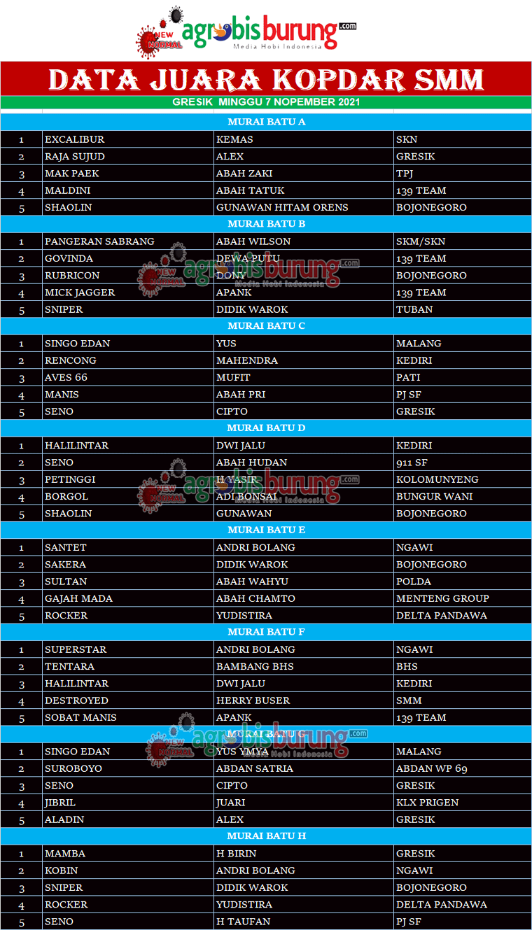 Headline Hobi Burung Juara Kicauan Kicauan Organizer Profil Data Juara Kopdar SMM di Gresik, minggu 07 November agrobisburung 8 November 2021 GRESIK, agrobisburung.com – Data Juara Kopdar SMM di Gresik, minggu 07 November Tinggalkan Komentar Post navigation Previous: Badai & Jaguar berbagi kemenangan di Bareta Cup 2021 di Bareta JemberNext: Sabila Kencana BF Ciamis Berjaya, Erdogan Meyakinkan, New Era & Bintang Kejora Masih Tangguh di Konkurs Sidareja Bangkit More Stories Headline Perkutut Profil Tambah Amunisi & Trah Ciamik H Iwan TS Jombang Boyong Produk Grand Master Dan LY BF Surabaya agrobisburung 28 November 2025 Headline Juara Perkutut Profil H Pendi Nadira Jakarta Terus Kembangan Trah Jawara Import-Lokal Pilihan Terbaik, Jebol K-WAT BTC-Hongkong-Tesla dari WAT BF Tasikmalaya dengan Transaksi Istimewa agrobisburung 28 November 2025 Headline Perkutut Profil Daftar Bookingan K-WAT Slipknot Terus Bertambah, H. Sunan RJL Cilacap & Kok Tong Hollywood Lombok Masuk Antrian 3-4, Hendry WAT Tasikmalaya Batasi Sampai Bookingan Kelima agrobisburung 25 November 2025