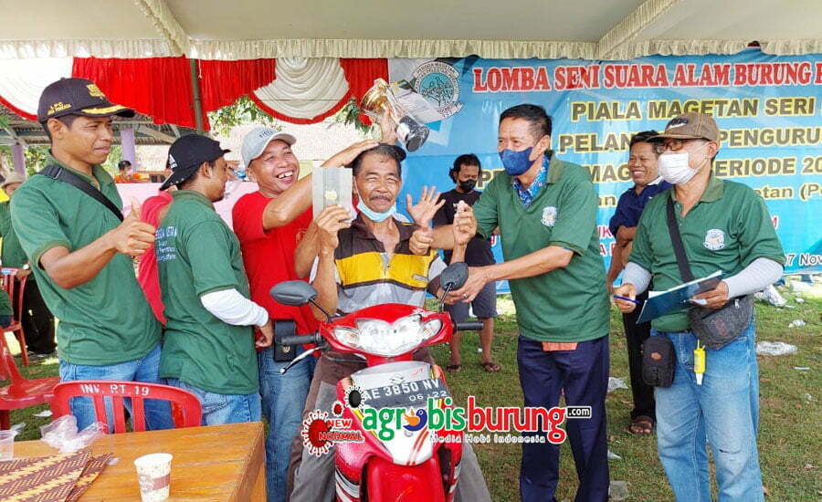 MAGETAN, agrobisburung.com – Satu lagi pengda di pengwil Jawa Timur resmi dilantik oleh ketua pengwil Jawa TImur H Gunawan, setelah sekian lama roda organisasinya vakum. Acara yang dilaksanakan dengan label lomba Piala Pengda Magetan # 1 2021 dalam ranghka pelantikan pengurus pengda yang baru ini di gelar pada Minggu (07/11). Hadir langsung ketua pengwil Jatim beserta beberapa pengurus pengwil untuk melantik ketua dan pengurus baru pengda Magetan untuk periode 2021 – 2025 dan melantik secara resmi Eko Prasetyo sebagai ketua pengda Magetan. “Selamat kepada ketua baru, semoga dengan formasi lengkapnya Magetan akan semakin maju hobi perkutut-nya dan ke depannya gelaran gelaran latber/lomba bisa selalu di galakkan,” ucap H Gunawan, ketua pengwil jawa timur.