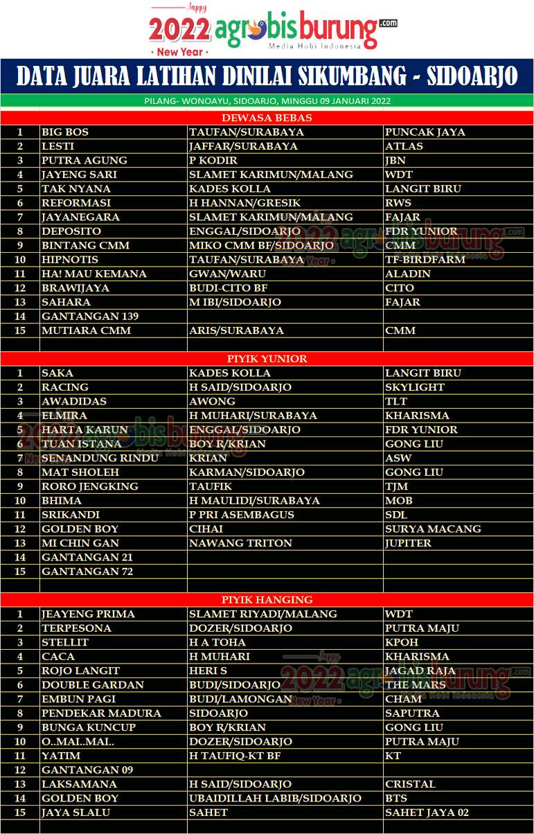 Headline Hobi Burung Juara Organizer Perkutut Perkutut Profil Tokoh Data Juara Latihan Dinilai Sikumbang 2022 Di Sidoarjo, Minggu 09 Januari agrobisburung 9 Januari 2022 Kru Sikumbang Siapkan Jadwal Rutin di tahun 2022 SIDOARJO, agrobisburung.com – Data Juara Latihan Dinilai Sikumbang 2022 Di Sidoarjo, Minggu 09 Januari Tinggalkan Komentar Post navigation Previous: Data Juara Latber Wongsopati Cup # 1 Bngatan Situbondo, Minggu 09 JanuariNext: Data Juara Liga Baringga # 2 Di Bandung, Minggu 09 Januari More Stories Headline Perkutut Profil Nurul Dewi Anggun BF Tamberu Sampang Terus berburu Jagoan Lomba & Kembali Taker Over Jawara LPI Diamond (AKS) Dari Masday Dengan Harga Super Fantastik agrobisburung 17 Februari 2026 Headline Perkutut Profil Hendry Kembali Rombak 25% Formasi Kandang WAT BF Tasikmalaya, Pramando BSD Booking Semua Kandang dengan Nilai Transaksi Spektakuler agrobisburung 17 Februari 2026 Headline Perkutut Profil Jawara Muda Arya Penangsang Orbitan Anyar H. Hairul 3 Bintang Team Moncer di Pamekasan, Generasi Terkini Platinum BF Cirebon agrobisburung 17 Februari 2026