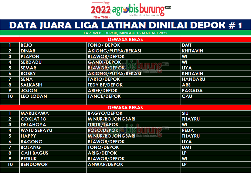 Juara di Liga Perkutut Depok 2022 putaran 1