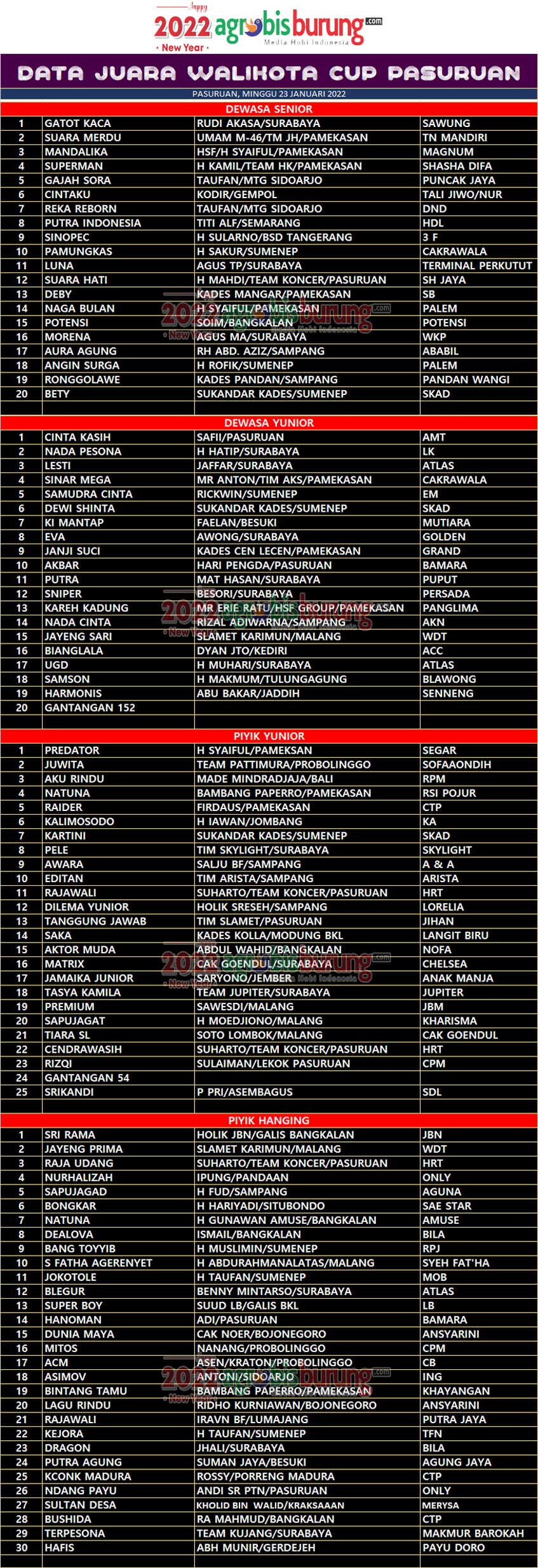 Headline Hobi Burung Juara Organizer Perkutut Perkutut Profil Tokoh Data juara Walikota Cup 2022 Di Pasuruan, Minggu 23 Januari agrobisburung 23 Januari 2022 PASURUAN, agrobisburung.com – Data juara Walikota Cup 2022 Di Pasuruan, Minggu 23 Januari Tinggalkan Komentar Post navigation Previous: Suntik Amunisi Lomba, H Iwan TS Jombang Big Deal dengan Wawan WKP dua Burung lombaNext: Data Juara Liga Suyadi # 6 2022 Di Karangayam Jogja, Minggu 23 Januari More Stories Headline Perkutut Profil Nurul Dewi Anggun BF Tamberu Sampang Terus berburu Jagoan Lomba & Kembali Taker Over Jawara LPI Diamond (AKS) Dari Masday Dengan Harga Super Fantastik agrobisburung 17 Februari 2026 Headline Perkutut Profil Hendry Kembali Rombak 25% Formasi Kandang WAT BF Tasikmalaya, Pramando BSD Booking Semua Kandang dengan Nilai Transaksi Spektakuler agrobisburung 17 Februari 2026 Headline Perkutut Profil Jawara Muda Arya Penangsang Orbitan Anyar H. Hairul 3 Bintang Team Moncer di Pamekasan, Generasi Terkini Platinum BF Cirebon agrobisburung 17 Februari 2026