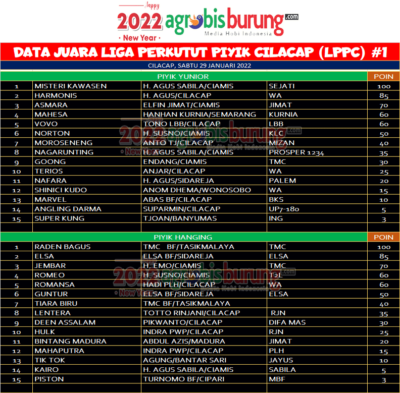 Headline Hobi Burung Juara Organizer Perkutut Perkutut Profil Tokoh Data Juara Liga Perkutut Piyik Cilacap # 1 2022, Sabtu 29 Januari agrobisburung 31 Januari 2022 CILACAP, agrobisburung.com – Data Juara Liga Perkutut Piyik Cilacap # 1 2022, Sabtu 29 Januari Tinggalkan Komentar Post navigation Previous: Pengda Bandung Manjakan Peserta Dengan Tiket Murmer Rp. 50 Ribu, Lapindo, Bintang Pangasih & BSS Tampil Tangguh Next: Misteri Kawasen & Raden Bagus Terbaik di LPPC 2022 #1, Ajang Pencarian Burung Berbakat, Siap Digelar 10 Putaran More Stories Headline Perkutut Profil Nurul Dewi Anggun BF Tamberu Sampang Terus berburu Jagoan Lomba & Kembali Taker Over Jawara LPI Diamond (AKS) Dari Masday Dengan Harga Super Fantastik agrobisburung 17 Februari 2026 Headline Perkutut Profil Hendry Kembali Rombak 25% Formasi Kandang WAT BF Tasikmalaya, Pramando BSD Booking Semua Kandang dengan Nilai Transaksi Spektakuler agrobisburung 17 Februari 2026 Headline Perkutut Profil Jawara Muda Arya Penangsang Orbitan Anyar H. Hairul 3 Bintang Team Moncer di Pamekasan, Generasi Terkini Platinum BF Cirebon agrobisburung 17 Februari 2026