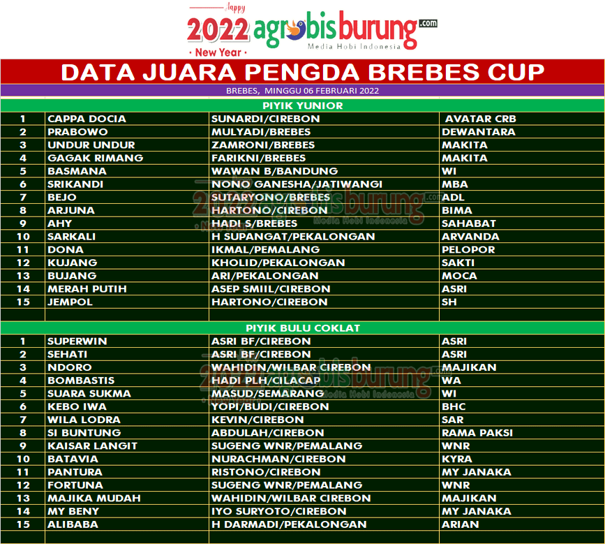 Headline Hobi Burung Juara Organizer Perkutut Perkutut Profil Tokoh Data Juara Pengda Brebes Cup 2022, Minggu 06 Februari agrobisburung 6 Februari 2022 BREBES, agrobisburung.com – Data Juara Pengda Brebes Cup 2022, Minggu 06 Februari Tinggalkan Komentar Post navigation Previous: Data Juara Endrata Cup di Kebumen 2022, Minggu 06 FebruariNext: Data Juara Bupati Cup Ciamis, Minggu 06 Februari More Stories Headline Perkutut Profil Nunu Depok “Turun Gunung” Langsung Borong 5 Pasang K-Unggulan WAT BF Tasikmalaya, H. Pendi Nadira Jakarta Jebol K-WAT Brahmana & BDB BF Lombok Jebol K-WAT Raja Ampat agrobisburung 13 Januari 2026 Headline Juara Perkutut Jawara Bandar Jawa 1, Boxer & Joko Tarub Melejit ke Podium Utama Di Latihan Dinilai Pengcam Pengantenan Pamekasan agrobisburung 12 Januari 2026 Headline Juara Perkutut Jawara Gading Asmara & Cah Samin Berkuasa Dikelasnya di Latihan Dinila Pengda Bojonegoro agrobisburung 11 Januari 2026