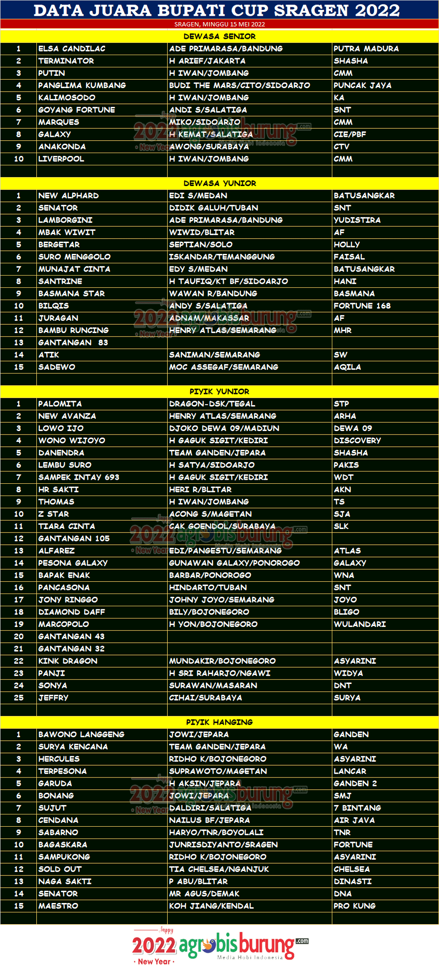 Headline Hobi Burung Juara Organizer Perkutut Perkutut Profil Data Juara Piala Bupati Sragen Cup 2022, Minggu 15 Mei agrobisburung 15 Mei 2022 Data Juara Piala Bupati Sragen Cup 2022, Minggu 15 Mei Tinggalkan Komentar SRAGEN, agrobisburung.com – Data Juara Piala Bupati Sragen Cup 2022, Minggu 15 Mei Pelepasan burung oleh Bupati Sragen Sekaligus membuka jalannya konkurs Piala Bupati Sragen 2022 Kru Panitia Pengda Sragen Juri yang bertugas Suasana Lomba Suasana lomba suasana lomba Tinggalkan Komentar Post navigation Previous: Dinasti Bf Blitar Cetak Jawara Lomba dari Trah Indukan Ciamik di Kandang UnggulanNext: Data Juara LPJB Keraton Kacirebonan Cup 2022, Minggu 15 Mei More Stories Headline Perkutut Profil Nunu Depok “Turun Gunung” Langsung Borong 5 Pasang K-Unggulan WAT BF Tasikmalaya, H. Pendi Nadira Jakarta Jebol K-WAT Brahmana & BDB BF Lombok Jebol K-WAT Raja Ampat agrobisburung 13 Januari 2026 Headline Juara Perkutut Jawara Bandar Jawa 1, Boxer & Joko Tarub Melejit ke Podium Utama Di Latihan Dinilai Pengcam Pengantenan Pamekasan agrobisburung 12 Januari 2026 Headline Juara Perkutut Jawara Gading Asmara & Cah Samin Berkuasa Dikelasnya di Latihan Dinila Pengda Bojonegoro agrobisburung 11 Januari 2026