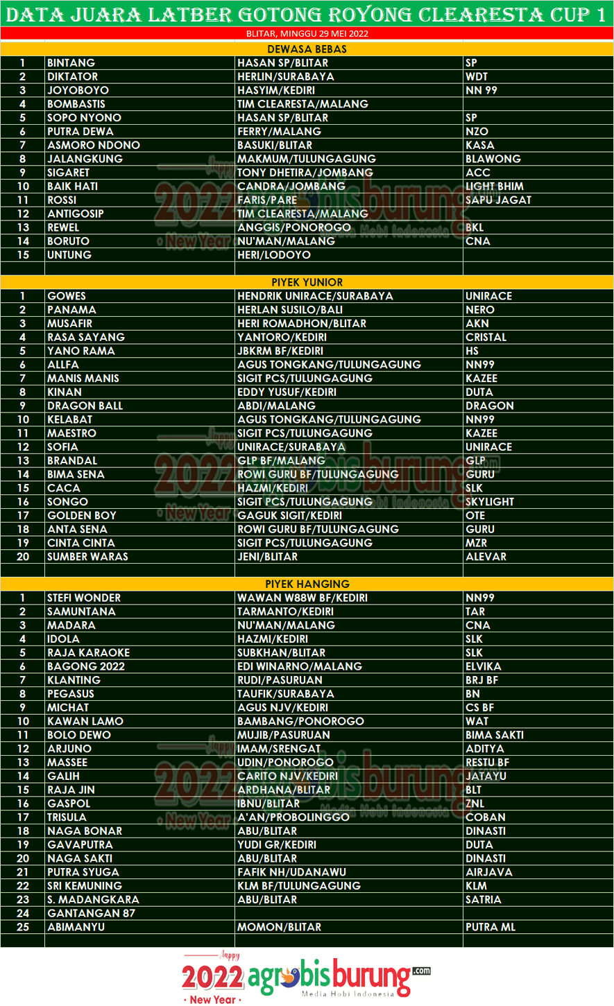 Headline Hobi Burung Juara Kicauan Organizer Perkutut Perkutut Profil Data Juara Latber Gotong Royong Clearesta Cup 2 di Blitar, Minggu 29 Mei agrobisburung 30 Mei 2022 Data Juara Latber Gotong Royong Clearesta Cup 2 di Blitar, Minggu 29 Mei Tinggalkan Komentar BLITAR, agrobisburung.com – Data Juara Latber Gotong Royong Clearesta Cup 2 di Blitar, Minggu 29 Mei Tinggalkan Komentar Post navigation Previous: Data Juara Liga Bangkalan Bangkit # 1 2022, Minggu 29 MeiNext: Data Juara Liga Perkutut Banyuwangi # 2 2022 di Banyuwangi, Minggu 26 Mei More Stories Headline Perkutut Profil Nunu Depok “Turun Gunung” Langsung Borong 5 Pasang K-Unggulan WAT BF Tasikmalaya, H. Pendi Nadira Jakarta Jebol K-WAT Brahmana & BDB BF Lombok Jebol K-WAT Raja Ampat agrobisburung 13 Januari 2026 Headline Juara Perkutut Jawara Bandar Jawa 1, Boxer & Joko Tarub Melejit ke Podium Utama Di Latihan Dinilai Pengcam Pengantenan Pamekasan agrobisburung 12 Januari 2026 Headline Juara Perkutut Jawara Gading Asmara & Cah Samin Berkuasa Dikelasnya di Latihan Dinila Pengda Bojonegoro agrobisburung 11 Januari 2026