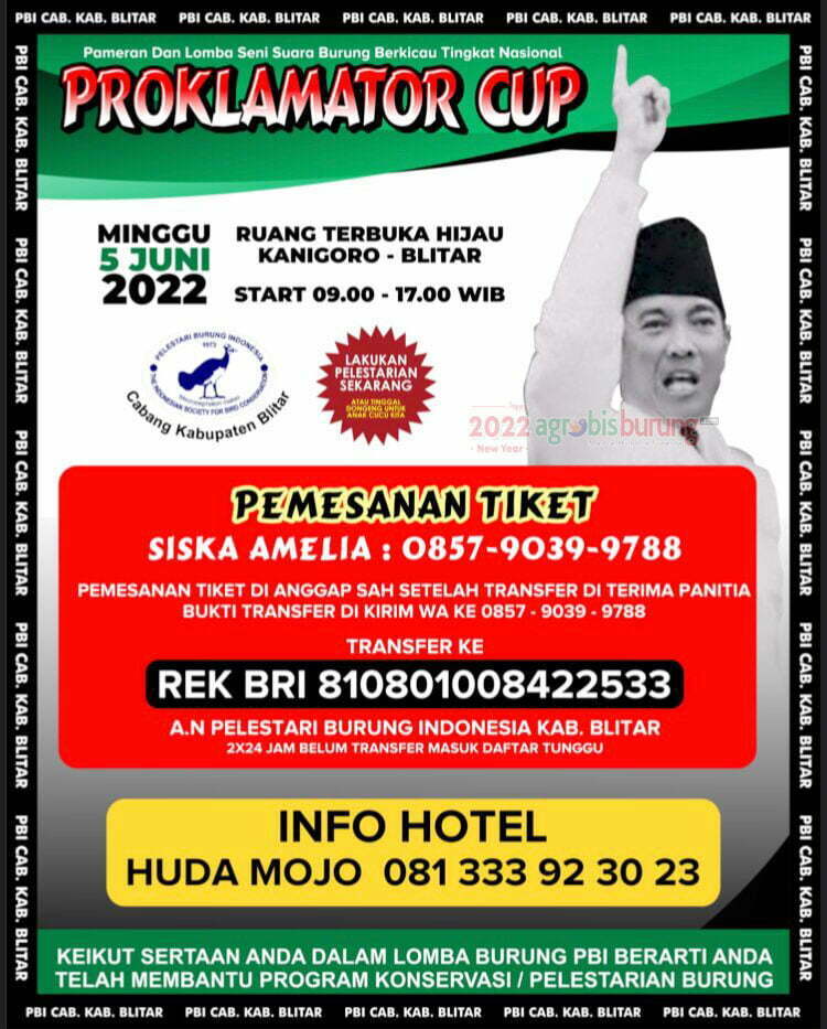 Siapapun yang hadir dan berpartisipasi aktif, baik single fighter maupun bird club, tentu akan bangga. Hadirnya mereka pada event elegan bertajuk Proklamator Cup gelaran PBI Cabang Kabupaten Blitar, tentu menjadi tonggak sejarah dan bukti otentik kepedulian kicau mania pada pelestarian satwa burung. PBI Cabang Kabupaten Blitar terus mengaktualisasi dan mengimplementasikan makna dari Salam Lestari. AB-USE