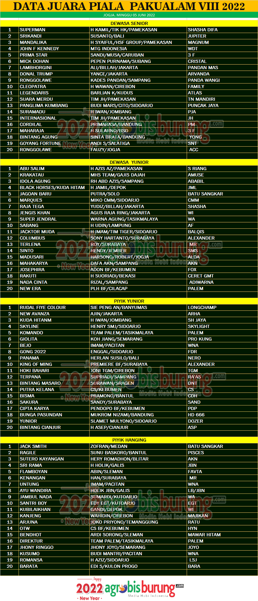 Data Juara Piala Pakualam VIII 2022 di Jogja, Minggu 05 Juni