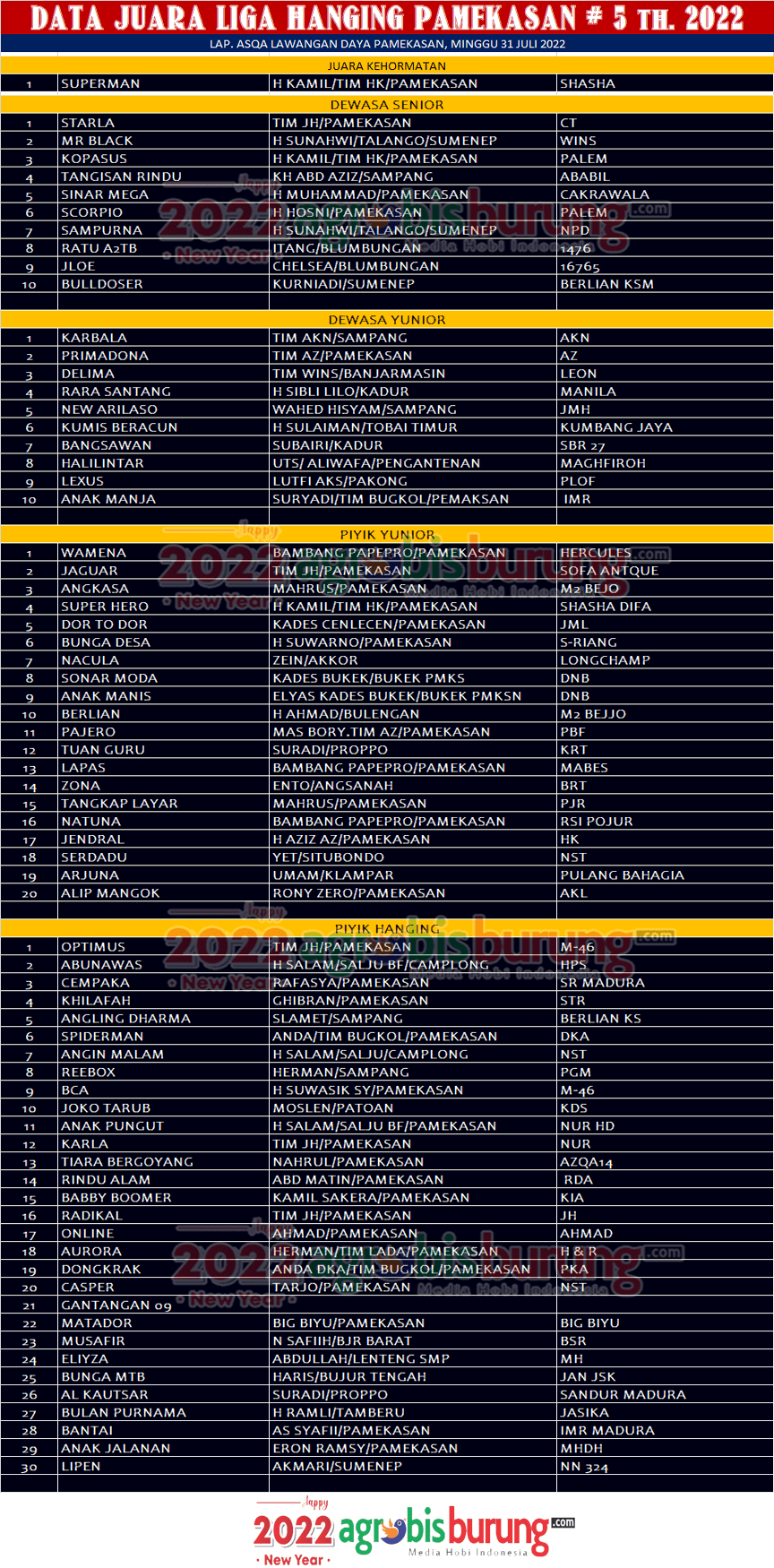 Headline Hobi Burung Juara Organizer Perkutut Perkutut Profil Tokoh Data Juara Liga Hanging Pamekasan # 5 Pengda Pamekasan, Minggu 31 Juli agrobisburung 31 Juli 2022 Data Juara Liga Hanging Pamekasan # 5 Pengda Pamekasan, Minggu 31 Juli Tinggalkan Komentar PAMEKASAN, agrobisburung.com – Data Juara Liga Hanging Pamekasan # 5 Pengda Pamekasan, Minggu 31 Juli Tinggalkan Komentar Post navigation Previous: Aw Spartan & Sena Rebut Penghuni Pertama di Latber Dinilai Galaxy GresikNext: Data Juara LP. Jateng Gayeng – Parlemen Cup # 5 Th. 2022 di Semarang, Minggu 31 Juli More Stories Headline Perkutut Profil WAT BF Tasikmalaya Rilis 69 Kandang Terbaru, “Final Update Season Imlek-Awal Puasa 2026” & Gelar Promo Spesial Selama Sepekan agrobisburung 18 Februari 2026 Headline Perkutut Profil Nurul Dewi Anggun BF Tamberu Sampang Terus berburu Jagoan Lomba & Kembali Taker Over Jawara LPI Diamond (AKS) Dari Masday Dengan Harga Super Fantastik agrobisburung 17 Februari 2026 Headline Perkutut Profil Hendry Kembali Rombak 25% Formasi Kandang WAT BF Tasikmalaya, Pramando BSD Booking Semua Kandang dengan Nilai Transaksi Spektakuler agrobisburung 17 Februari 2026