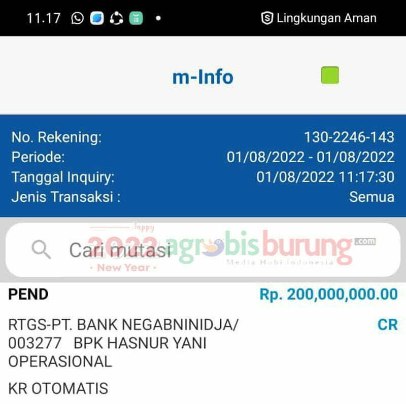 SURABAYA, agrobisburung.com – H Reyhan asal Binuang, Banjarmasin Kalimantan Selatan lagi lagi bikin “sensasi” melakukan transaksi dan memboyong burung lomba untuk amunisi lombanya, transaksi besar ini kembali di lakukan H Reyhan dengan memboyong salah satu amunisi lomba Trsitan KPOH Sidoarjo. Adalah Spiderman bergelang Shasha yang diboyongnya senilai Rp. 200 juta dari tangan Tristan KPOH memang sudah diincar selama beberapa hari terakhir, kualitas terbaiknya menjadi salah satu pertimbangan H Reyhan memboyong jawara bergelang Shasha tersebut. “Sudah di pantau dalam beberapa hari terakhir dan baru deal hari ini dan langsung dibayar kontan/transfer setelah harga jadi disepakati keduanya,” ucap Abah Atro orang kepercayaan H Reyhan.