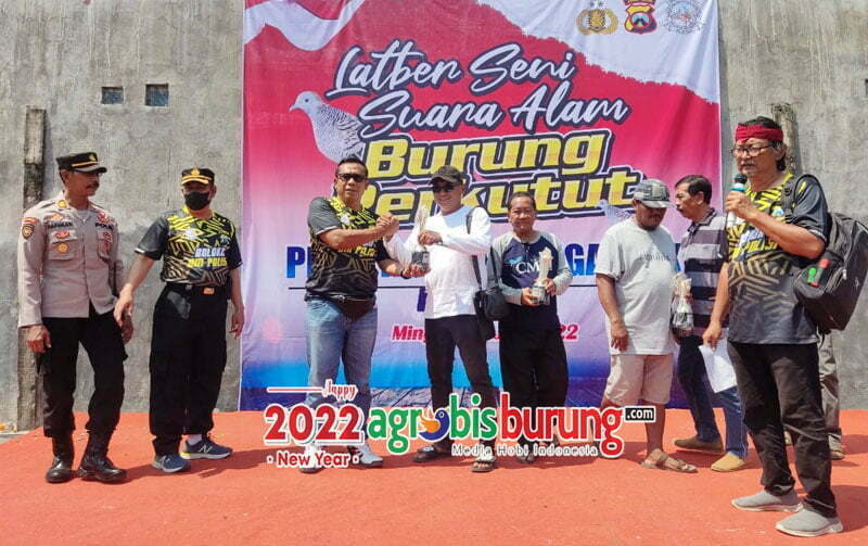 NGANJUK, agrobisburung.com – Gelaran latber Gotong Royong Kapolres Cup Nganjuk 2022 di Lap. Sombron Loceret Ngajuk pada Minggu (31/07) menjadi ajang yang menarik untuk kungmania di Ngajuk dan sekitarnya serta di paguyuban Gotong Royong. Pasalnya gelaran dalam rangka HUT Bhayangkara ke-76 ini dihadiri langsung Kapolres Nganjuk AKBP Boy Jeckson S., S.H.,S.I.K.,M.H. yang langsunng mengapresiasi lomba perkutut yang dihadiri banyak peserta dari berbagai daerah yang memiliki multi efek menggerakkan perekonomian masyarakat. Selain Kapolres juga ikut hadir Ketua DPRD Nganjuk, Dandim 0810/Nganjuk dan Sekda (Plt. Bupati Ngajuk) “Burung perkutut adalah salah satu simbol kelestarian budaya Jawa. Kita semua memiliki tanggung jawab untuk meneruskan dan menjaganya agar tetap menjadi budaya Jawa. Namun jangan sekali aja gelarannya, harus ada kelanjutannya silahkan agendakan jadwal latber dan lomba supaya perkututan di Ngajuk semakin bergairah, ” kata Kapolres Nganjuk AKBP Boy Jeckson.