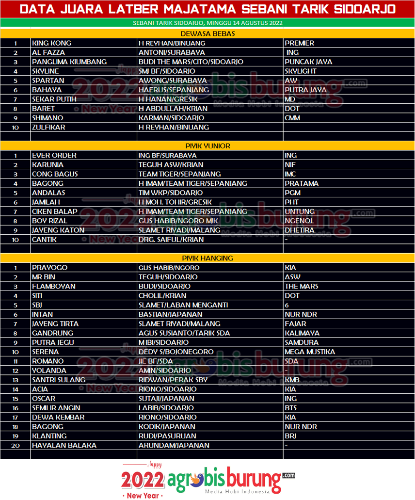 Headline Hobi Burung Juara Organizer Perkutut Perkutut Profil Data Juara Latber Majatama Di Sebani Tarik Sidoarjo, Minggu 14 Agustus agrobisburung 14 Agustus 2022 Data Juara Latber Majatama Di Sebani Tarik Sidoarjo, Minggu 14 Agustus Tinggalkan Komentar SIDOARJO, agrobisburung.com – Data Juara Latber Majatama Di Sebani Tarik Sidoarjo, Minggu 14 Agustus Tinggalkan Komentar Post navigation Previous: Dewata Buktikan Kualitasnya & Ababil Menawan di Latber HUT RI Ke-77 Pengda Kab. TangerangNext: Data Juara Konkurs Liga Baringga # 4 di Bandung, Minggu 14 Agustus More Stories Headline Perkutut Profil WAT BF Tasikmalaya Rilis 69 Kandang Terbaru, “Final Update Season Imlek-Awal Puasa 2026” & Gelar Promo Spesial Selama Sepekan agrobisburung 18 Februari 2026 Headline Perkutut Profil Nurul Dewi Anggun BF Tamberu Sampang Terus berburu Jagoan Lomba & Kembali Taker Over Jawara LPI Diamond (AKS) Dari Masday Dengan Harga Super Fantastik agrobisburung 17 Februari 2026 Headline Perkutut Profil Hendry Kembali Rombak 25% Formasi Kandang WAT BF Tasikmalaya, Pramando BSD Booking Semua Kandang dengan Nilai Transaksi Spektakuler agrobisburung 17 Februari 2026