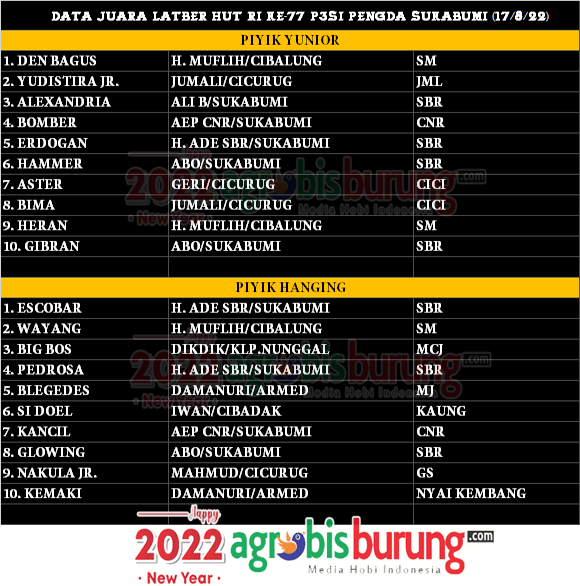Seperti yang kembali dilakukannya pada gelaran di Sukabumi, Rabu (17/8/22). SBR Skuad kembali mendominasi pada gelaran Latber dalam rangka 17 Agustusan di lapang Lembur Sawah, Sukabumi. Dari 2 kelas yang dilombakan (piyik yunior & hanging), SBR berhasil menempatkan 7 produknya. Di kelas piyik yunior SBR menempatkan empat produknya. Sisanya, tiga produk di kelas hanging.