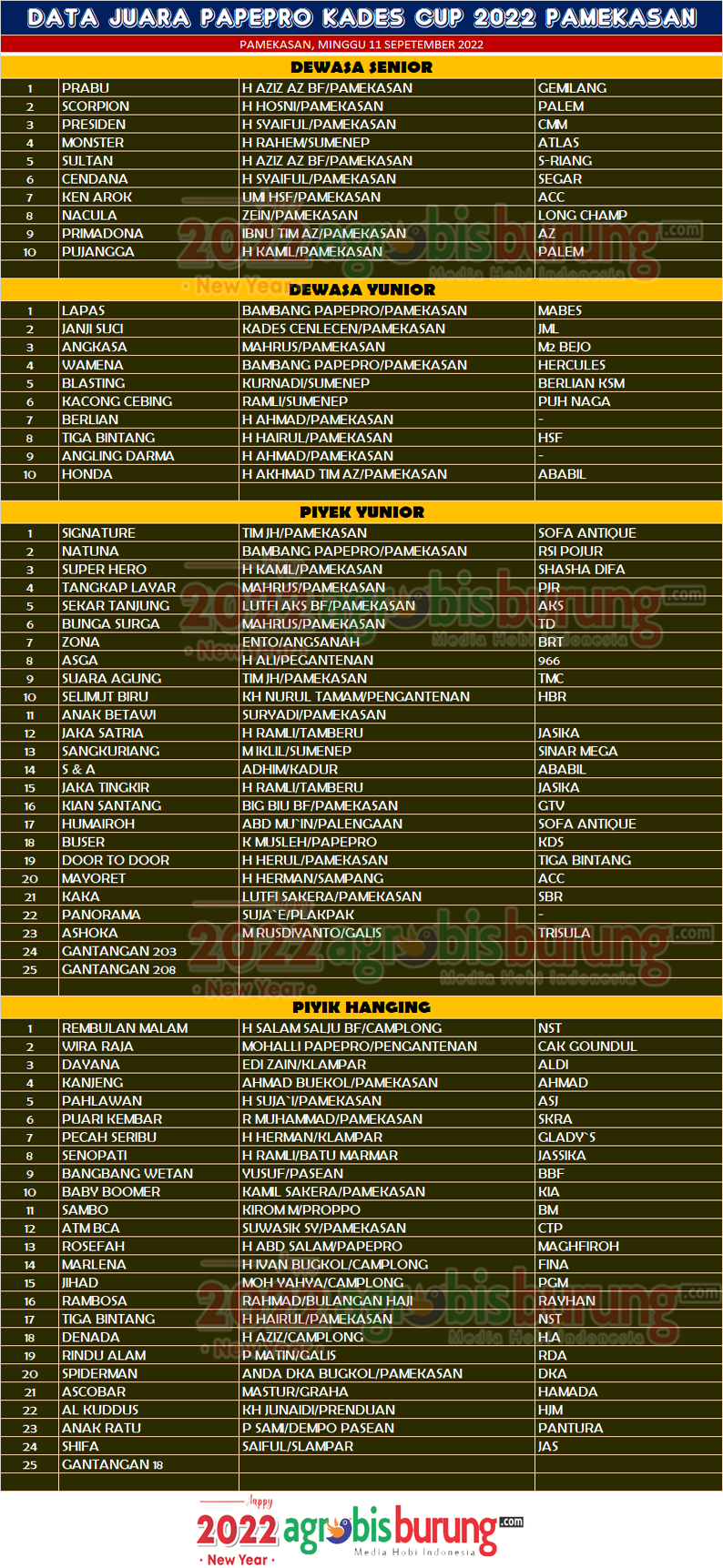 Data Juara Papepro Kades Cup 2022 Tlangoh Propo Pamekasan, Minggu 11 September