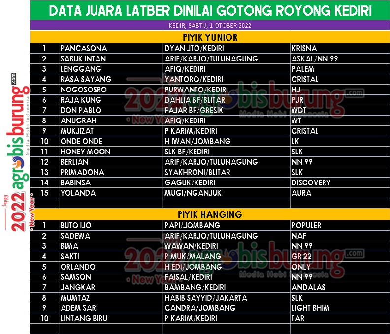 KEDIRI, agrobisburung.com – Latber dinilai Gotong Royong pengda Kediri pada Sabtu (01/10) menjadi ajang yang seru sekaligus pembuktian beberapa jawara muda yang peforma lagi naik. Di dewasa bebas, debutan anyar Pancasona bergelang Krisna milik Dyan JTO Kediri tampil pik di kelasnya. Jawara muda ini mampu menampilkan suara istimewa sehingga bisa menguasai podium pertama. Sabuk Intan bergelang Askal/NN 99 yang biasanya juga peformn apik kali ini harus mengakui kehebatan Pancasona dan bersama Lenggang bergelang Palem menempati posisi kedua dan ketiga.