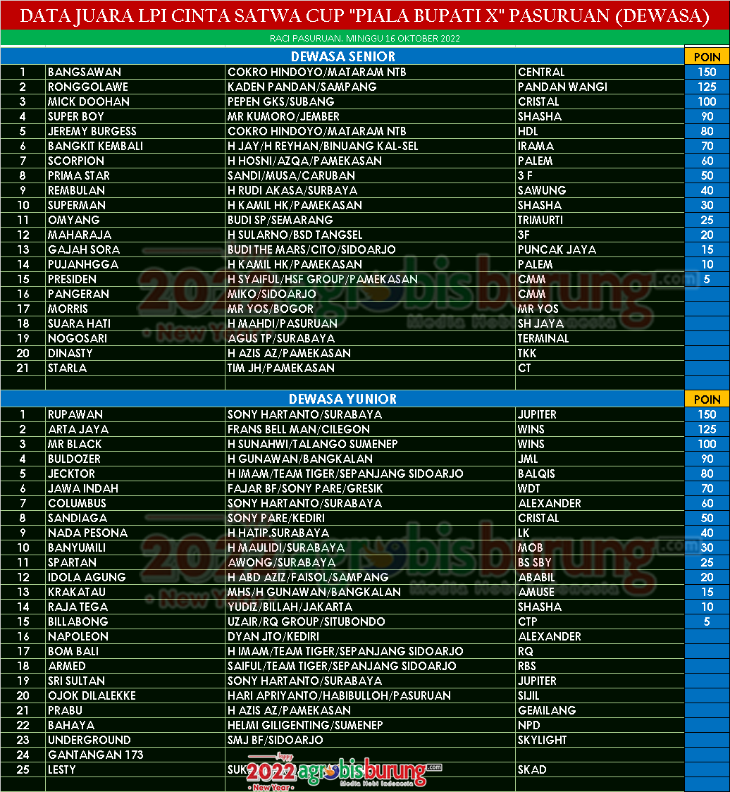 Bangsawan Bikin Kejutan, Rupawan V.S Arta Jaya bertarung Sengit di LPI Cinta Satwa – Bupati Cup X 2022 di Pasuruan