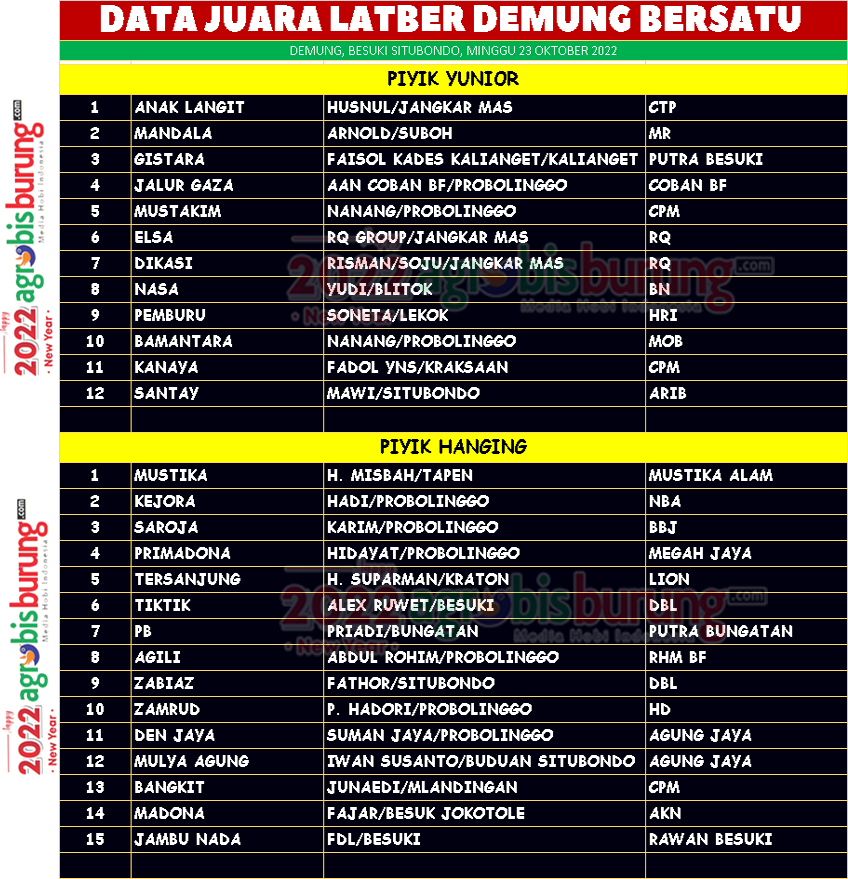 BESUKI, agrobisburung.com – Latber Demung Bersatu yang di gelar pada Minggu (23/10) di menjadi ajang yang menarik untuk kungmania Situbondo dan sekitarnya dan ini juga menjadi pembuktian bahwa kungmania Situbondo sangat optimis perkembangan hobi perkutut di kotanya akan semakini semarak. Aguk Prahyugi SP.d, ketua panitia mengatakan bahwa Latber kali ini memang menjadi bagian penting perkembangan hobi perkutut di Besuki dan juga Situbondo, kami juga atas nama panitia menyampaikan terima kasih kepada semua peserta yang sudah merapat di Demung Besuki Sitibondo serta terima kasih kepada ketua pengda Situbondo dan kungmania yang sudah mendukung Latber Demung Bersatu Cup 2022.