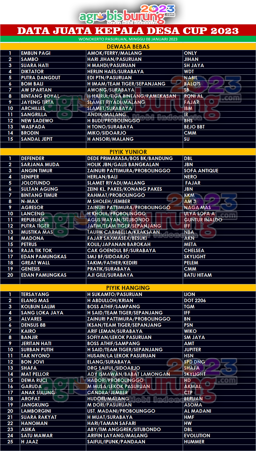 PASURUAN, agrobisburung.com –  Tahun 2023 benar benar bakal menjadi tahun yang “melelahkan” kungmania di berbagai daerah, pasalnya sambil menunggu jadwal bergulirnya  LPI ataupun liga liga daerah maka kegiatan rutin bakal diramaikan dengan latihan dinilai. Termasuk Kepala Desa Cup di Wonokerto Pasuruan pada Minggu (08/01). Seperti gelaran sebelumnya Kepala Desa Cup kali ini juga mendapat antusias dari kungmania dari berbagai daerah selain Pasuruan dan semua blok yang disediakan panitia juga ludes di serbu kungmania yang memang sudah penasarn untuk mencoba jago jago barunya.