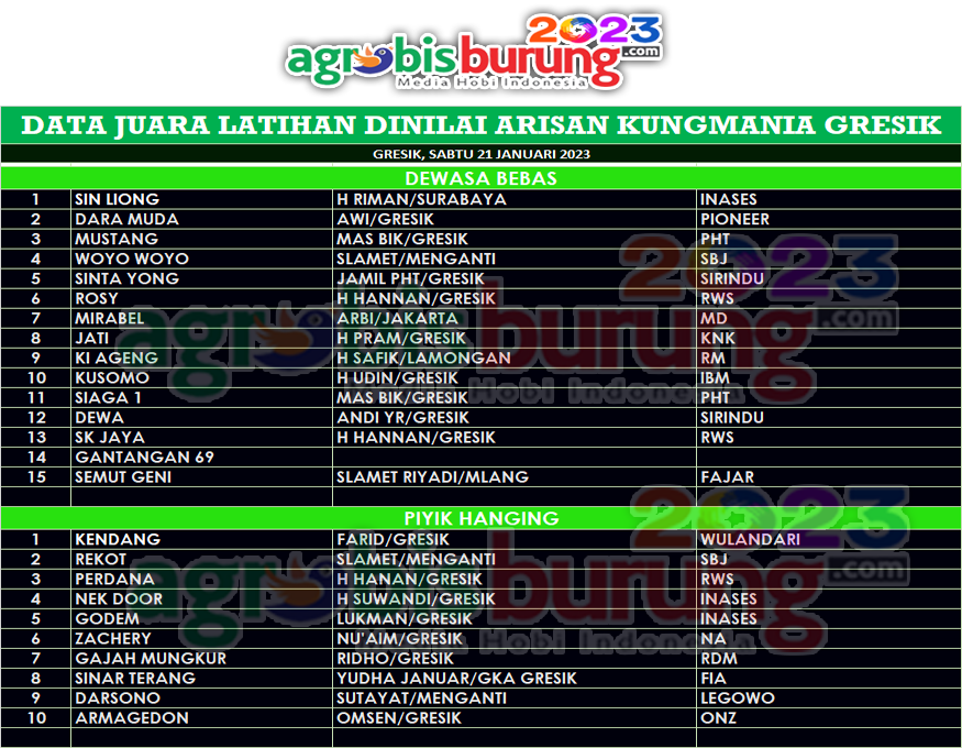 GRESIK, agrobisburung.com – Agenda rutin laithan dinilai kungmania gresik di lapangan Galaxy Gresik pada Sabtu (21/01) menjadi agenda rutin bulanan yang sekaligus dibarengi dengan pengopyokan arisan. Rusman, koordinator latihan dinilai Gresik mengatakan bahwa latihan dinilai dalam setiap bulan di isi dengan kegiatan arisan yang dalam sebulan dilakukan dan latihan dinilai juga menjadi agenda perdana kungmania Gresik di tahun 2023.