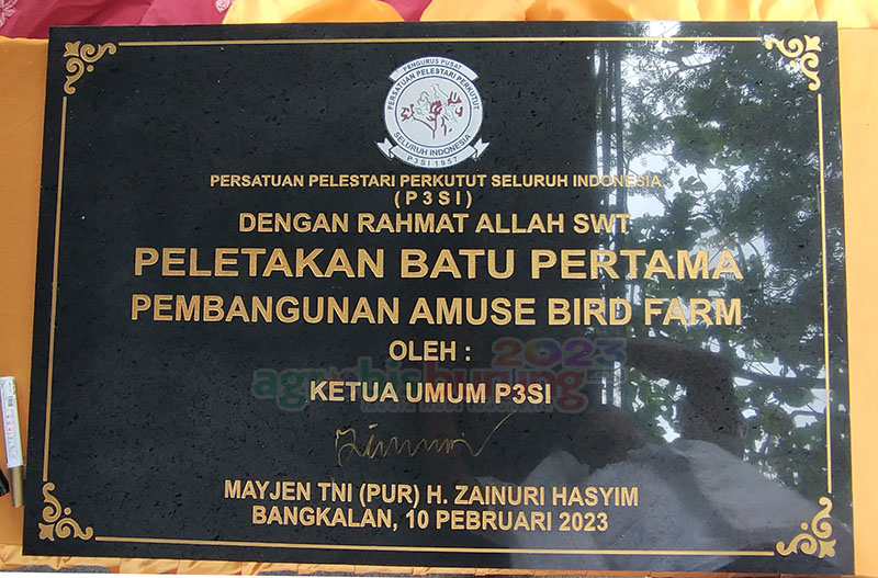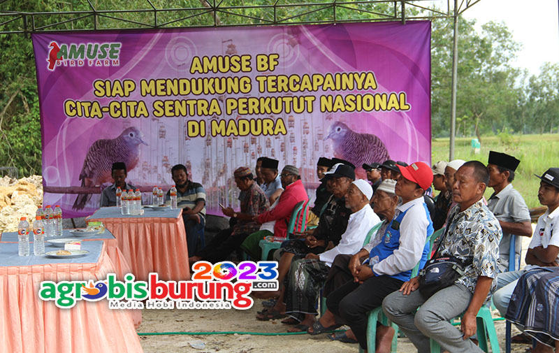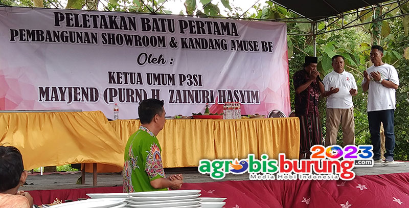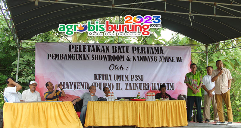 BANGKALAN, agrobisburung.com – Sebagai salah satu leader pencanangan Madura sebagai Sentra Perkutut Nasional yang sudah sejak beberapa tahun digulirkan oleh ketua umum P3Si, H Zainuri Hasyim menjadi kepedulian bagi H Gunawan Amuse untuk mewujudkannya dan diwujudkan di Madura dengan memberikan sebuah penanta yang bisa dicontoh oleh peternak di Madura. H Gunawan Amuse, ownernya Amuse BF yang juga ketua pengwil Jawa Timur ingin memberikan petanda bahwa kungmania Madura sangat mendukung cita cita program mulai ketua umum P3SI ini untuk menjadikan Madura sebagai sentranya perkutut di Indonesia dan penanda tersebut dengan memberikan kejutan di pembangunan Showroom dan kandang baru Amuse Bf markas ketiga dengan mengundang langsung Ketua Umum P3SI dan beberapa jajaran pengurus P3SI Pusat yang memang mendampinginya untuk meletakkan batu pertama pembangunan tersebut. Bahkan Ketua umum P3SI juga menandatangani prasasti pembangunan sebagai wujud realiasi dan dukungannya untuk menjadikan Madura sebagai Sentra Perkutut Indonesia.