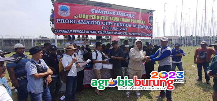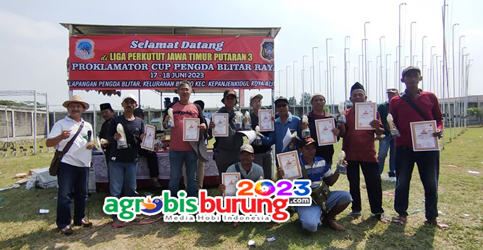 BLITAR, agrobisburung.com – Gelaran LP Jatim # 3 Proklamator Cup 2023 di hari pertama pada Sabtu (17/06) di Lapangan Kantor Kelurahan Bendo Blitar menjadi ajang pembuka seri LP Jatim yang dilaksanakan pengda Blitar. Kehdairan kungmania dari berbagai kota di Jatim membuat suasa lomba sangat seru, bahkan beberapa jago jago handal dari wilayah tapak kuda blok timur mampu menunjukkan kelasnya sebagai jawara sejati. Di piyik bebas, debutan muda Satu Hati bergelang Atlas milik Yudi Netizen yang biasanya turun di piyik yunior langsung ngejoss saat dikerek full di kelas piyik bebas. Kemenangan Satu Hati memang sebuah kejutan karena saat ini jago jago handal dari blok timur tapal kuda semakin bersinar kemampuannya, Gong Agung bergelang AKN dan Mahabrata berglang HBR yang juga tampil menawan memberikan perlawan penuh kepada Satu Hati dan di penghujun lomba keduanya harus menyerah merebut posisi kedua dan ketiga.