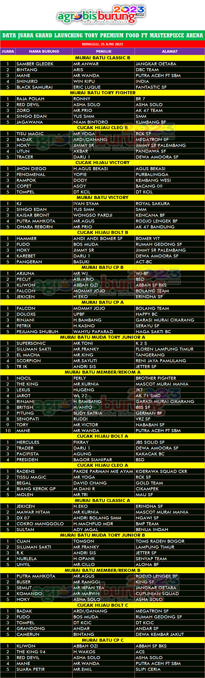 Headline Hobi Burung Juara Kicauan Kicauan Organizer Profil Tokoh Data Juara Grand Lounching Tory Premium Food FT. Masterpiece Arena Tangerang agrobisburung 27 Juni 2023 TANGERANG, agrobiburung.com – Data Juara Grand LOunching Tory Premium Food FT. Masterpiece Arena Tangerang Tinggalkan Komentar Post navigation Previous: Superman Memang Juara Sejati, Ini Dibuktikan dengan kemenangan Merebut juara LPINext: Banjir Door Prize Motor Di Grand Launching Tory Premium Brid Food Feat Masterpiece Arena More Stories Headline Perkutut Profil Golsindo BF Jakarta Rilis Formasi Kandang 2026, Andalkan Materi Indukan Terbaik, Siap Cetak Perkutut Kualitas Lomba dengan Bobot Suara Istimewa agrobisburung 14 Januari 2026 Headline Perkutut Profil Nunu Depok “Turun Gunung” Langsung Borong 5 Pasang K-Unggulan WAT BF Tasikmalaya, H. Pendi Nadira Jakarta Jebol K-WAT Brahmana & BDB BF Lombok Jebol K-WAT Raja Ampat agrobisburung 13 Januari 2026 Headline Juara Perkutut Jawara Bandar Jawa 1, Boxer & Joko Tarub Melejit ke Podium Utama Di Latihan Dinilai Pengcam Pengantenan Pamekasan agrobisburung 12 Januari 2026