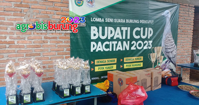 PACITAN, agrobisburung.com –  Konkurs Bupati Pacitan Cup 2023 pada Minggu (01/10) menjadi kebangkitan kungmania Pacitan untuk meramaikan hobi perkutut Kabupaten Barat Selatan blok Timur. Hal ini juga ditandai dengan hadirnya Bupati Pacitan Indrata Nur Banyuaji , H Sugik tokoh perkutut Pacitan dan tokoh tokoh lain serta pengurus pengda Pacitan yang sangat bersuka cita dengan gelaran tersebut. Dan juga kehadiran kungmania dari berbagai kota juga membuat konkurs tersebut sangat meriah. “Terima kasih atas kehadiran Bupati Pacitan, tokoh tokoh perkutut di Pacitan dan para peternak di Pacitan serta kungmania dari berbagai kota yang hadir di gelaran Bupati Cup Pacitan,” kata Prima salah satu kru panitia.