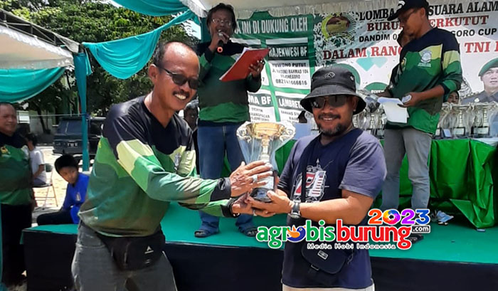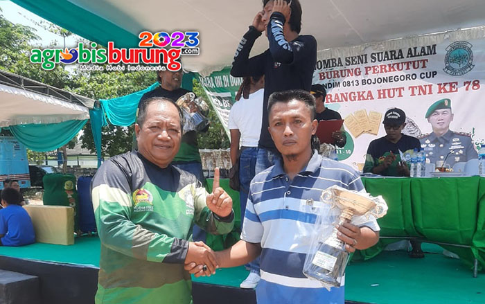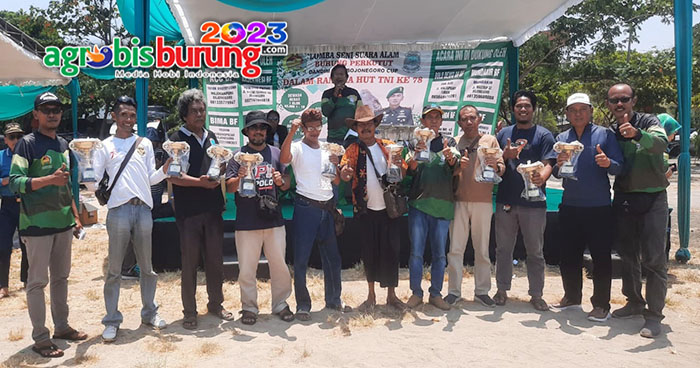 Dan di kelas piyik hangin rising star baru melejit dipodium pertama, jawara bernama Paskibraka bergelang ALZ milik Anas Sidoarjo ini memang mengejutkan tuannya karena yang dibawa adalah hasil kebun sendiri. Tentunya Anas ALZ sangat bangga hasil breedingnya bisa moncer. “Nggak nyangka kalau ternakan kami bisa masuk 5 besarvdi LPJT waktu itu. Apalagi di Bojonegoro sampai juara 1 dalam Dandim Cup Bojonegoro,” ujar owner ALZ BF,” Anas Al Azhar usai lomba. AB-ENDJuara Piyik Hanging
