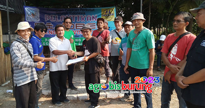 SIDOARJO, agrobisburung.com – Gelaran latihan dinilai di Lapangan Pengcam Wonoayu pada Kamis (02/11) menjadi moment baru buat kungmania di Pilang Wonoayu Sidoarjo. Bersamaan dengan kegiatan latihan dinilai perdana juga di lantik pengurus baru Pengcam Wonoayu serta menandai berpindahnya lapangan yang lama ke lokasi baru. Budi the mars, sebagai pelindung dan penasehat pengcam Wonoayu dan mewakili kawan kawan kungmania di Pilang Wonoayu Sidoarjo mengatakan bahwa mulai saat ini latihan di Lap. Pilang lama berpindah di Lap. Pilang baru “SIJOBER” Sidoarjo Bersatu di Pilang Wonoayu. Dan lokasinya masih berdekatan dengan lapangan yang lama. “Kita bersama sangat berkomitmen untuk terus meramaikan hobi perkutut di Sidoarjo sesuai arahan ketua pengda Sidoarjo untuk mengaktifkan pengcam dengan kegiatan latihan dinilai secara bergiliran, ” kata Budi The Mars yang juga wakil ketua pengda Sidoarjo.