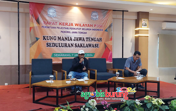 SEMARANG, agrobisburung.com – Memasuki tahun 2024 Pengwil Jateng langsung ngegas menggelar hajatan Rakerwil jateng ’24 yang dilaksanakan pada Minggu (07/01) di Meeting Room Hotel Triiz Semarang. Para peserta dan utusan serta undangan Rakerwil hadir dari hampir seluruh pengda di Jawa Tengah Rakerwil Jateng yang tetap mengusung semboyan “Seduluran Saklawase”. Acara juga langsung dibuka langsung oleh ketua pengwil Jateng, Budi SP. Disampaikan bahwa agenda Rakerwil menjadi agenda penting untuk eveluasi kerja selama tahun 2023 serta mempersiapkan program kerja di tahun 2024 mendatang. Kita semua harus selalu kompak, guyub dalam berhobi karena kedepannya tujuan memajukan dan menciptakan perkutut di Jateng bisa tercapai, Seduluran Saklawase.