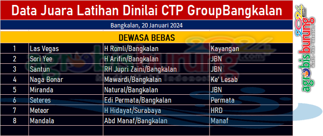 Headline Hobi Burung Juara Organizer Perkutut Perkutut Profil Tokoh Data Juara Latihan Rutin di CTP Group Bangkalan, Sabtu 20 Januari agrobisburung 20 Januari 2024 BANGKALAN, agrobisburung.com – Data Juara Latihan Rutin di CTP Group Bangkalan, Sabtu 20 Januari Tinggalkan Komentar Post navigation Previous: Bukti Hendry WAT Tak Fanatik Peternak Tertentu, Specialist Di-Take Over dengan Mahar FantastisNext: Tanpa Teriak Berlebihan, Jawara Qolbun Salim, Si Endel dan Surya Naga Melejit di Mojopahit MJ Cup Mojokerto More Stories Headline Perkutut Profil Nunu Depok “Turun Gunung” Langsung Borong 5 Pasang K-Unggulan WAT BF Tasikmalaya, H. Pendi Nadira Jakarta Jebol K-WAT Brahmana & BDB BF Lombok Jebol K-WAT Raja Ampat agrobisburung 13 Januari 2026 Headline Juara Perkutut Jawara Bandar Jawa 1, Boxer & Joko Tarub Melejit ke Podium Utama Di Latihan Dinilai Pengcam Pengantenan Pamekasan agrobisburung 12 Januari 2026 Headline Juara Perkutut Jawara Gading Asmara & Cah Samin Berkuasa Dikelasnya di Latihan Dinila Pengda Bojonegoro agrobisburung 11 Januari 2026