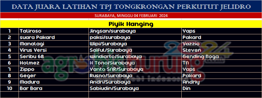 Sukses di Tahun 2023, TPJ Surabaya digelar Lagi & Jawara Taliroso & Suara Pakard berbagi Posisi terbaik pertama dan kedua