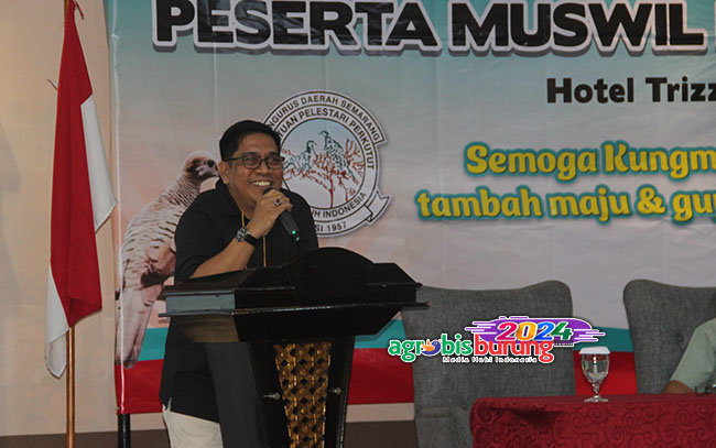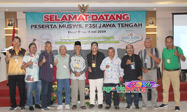 SEMARANG, agrobisburung.com – Akhirnya ketua baru P3SI pengwil Jawa Tengah berganti sosok setelah secara aklamasi H Kemat Parlemen terpilih dalam Muswil Jateng 2024 di Semarang. Terpilihnya H Kemat pengganti Budi SP ini memang membawa angin segar untuk kemajuan program keberlanjutan dalam menyemarakkan dan memajukan perkembangan hobi perkutut di Jawa Tengah secara serentak. Dukungan dari 100 persen wakil wakil Pengda/pengcam yang hadir menjadi modal semangat kerja H Kemat membawa Jateng menjadi salah satu bagian penting dari perkembangan hobi perkutut di Indonesia. Setelah hasil Muswil ditetapkan secara aklamasi pada Sabtu Malam (11/05) di Hotel Triizz Semarang paginya Minggu (12/05) Ketua Umum P3SI langsung melantiknya secara resmi kepemimpinan H Kemat dan jajaran pengurusnya untuk menjadi pengurus Pengwil Jateng untuk periode 2024 – 2029.