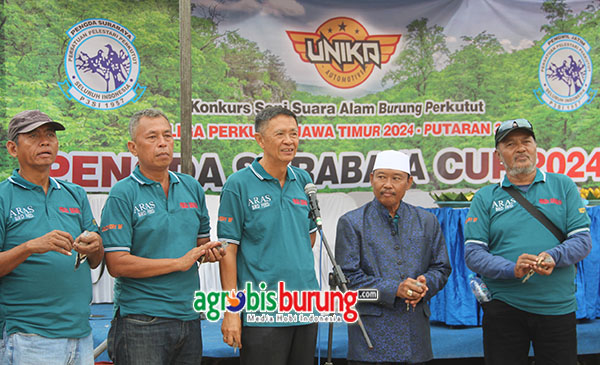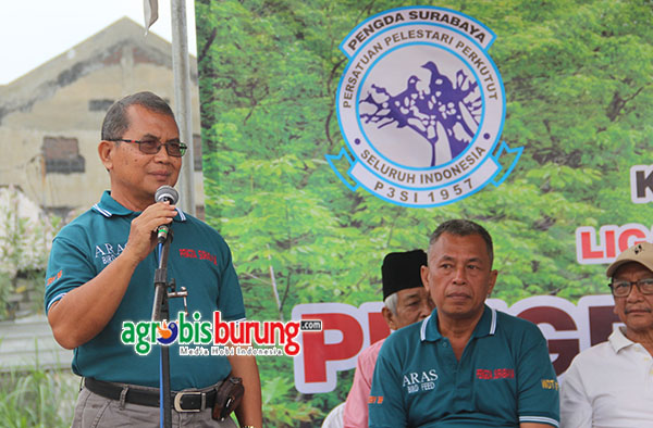 Prof. DR. H Suyono MP.d yang memberikan sambutan mewakili kepengurusan baru Pengda Surabaya menyampaikan bahwa atas nama pengurus baru berterima kasih atas pelantikan dari ketua pengwil Jawa Timur. Dan harapan atas pelantikan pengurus baru pengda Surabaya akan membawa perkembangan hobi perkutut semakin semarak.