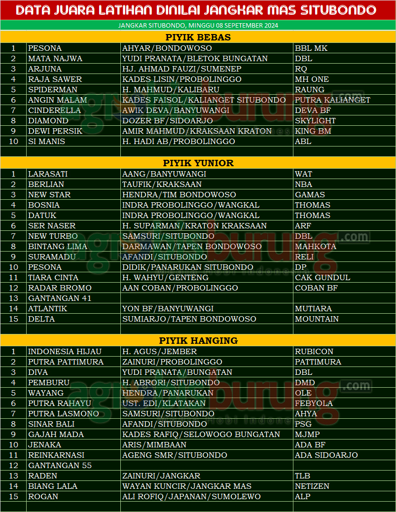 Data Juara Latihan Dinilai Jangkar Mas Situbondo, Minggu 08 September