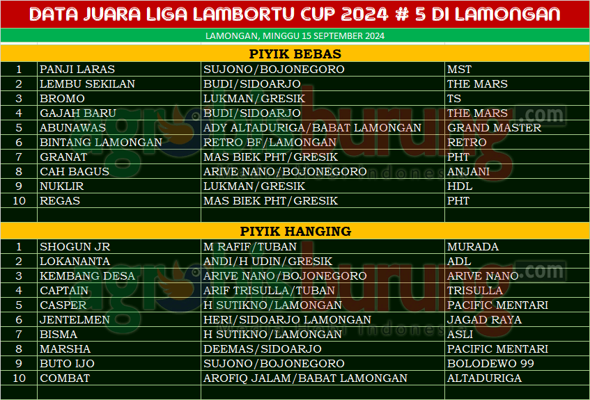 Data Juara Liga Lambortu 2024 # 5 Di Lamongan, Minggu 15 September