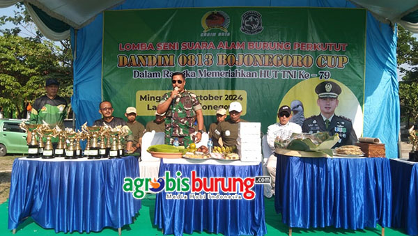 Gelaran konkurs Dandim 0813 Bojonegoro Cup 2024 yang dilaksanakan oleh Pengda Bojonegoro pada Minggu (13/10) benar benar menjadi ajang pembuktian bahwa hobi perkutut di Bojonegoro semakin menggeliat. Apalagi di gelaran tersebut Dandim 0813 Bojonegoro yang diwakili Kasdim, Mayor Bambang Riyanto
