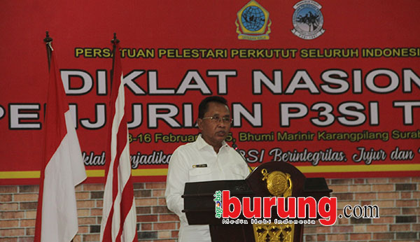 SURABAYA, agrobisburung.com – Diklat Nasional Penjurian P3SI 2025 yang di gelar di Bumi Marinir Karangpilang Surabaya pada Kamis (13/02) hingga Minggu (16/02) akhirnya dibuka secara resmi oleh ketua P3SI yang diwakili oleh Wakil Ketua P3SI Marsma TNI (Purn) Nano Suratno dan di serahkan kepada ketua pantia Laksda TNI (Purn) B Ken Tri Basuki. Dalam sambutannya Nano Suratno menyampaikan bahwa kegiatan Diklat adalah melaksanakan program P3SI dimana keterbilatan banyak pihak demi membawa harapan ke depannya untuk penjurian P3SI bisa semakin baik dan fair play. “Terima kasih kepada Laksda TNI (Purn) B Ken Tri Basuki atas terlaksananya kegiatan Diklat Penjurian ini, semoga dengan fasilitas yang ada di Bhumi Marinir Karangpilang ini kita semua bisa maju bersama untuk kemajuan P3SI dan hobi perkutut di Indonesia,” papar Marsma TNI (Purn) Nano Suratno