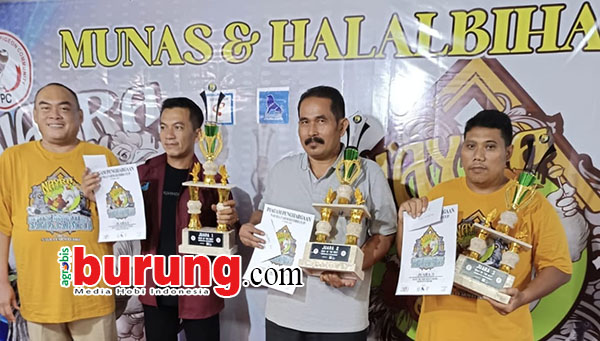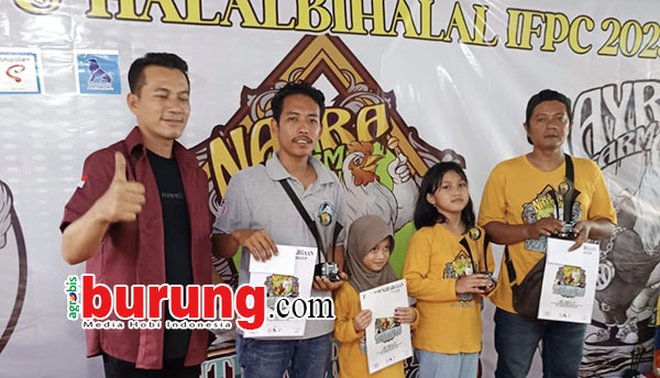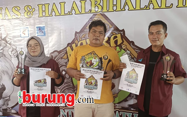 Para juara BOB kelas Merpati Hias dari kanan IFPC Lamongan, Mbah Demang Doro, Nayra Farm dan salah satu juri