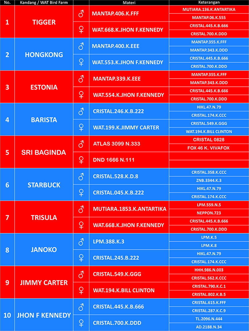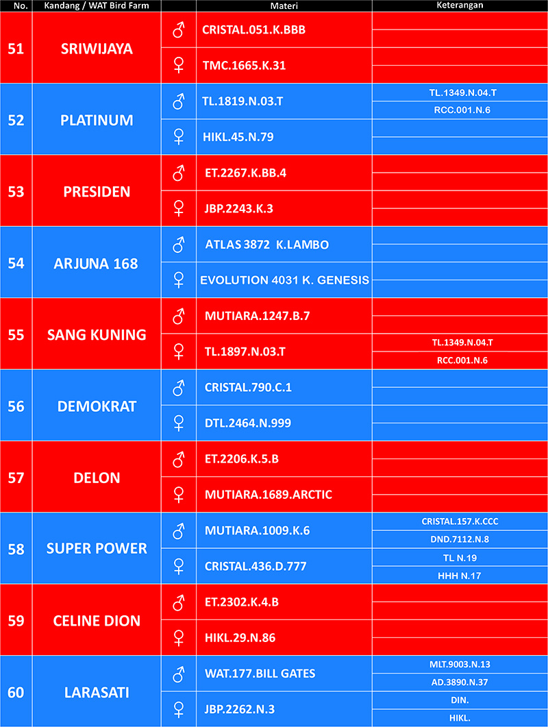 Upgrade materi kandang dilakukan secara berkala untuk menjaga kepercayaan konsumen dan agar kualitas produksi semakin baik. Berikut ini update formasi 68 kandang terbaru WAT BF Tasikmalaya, April 2025.