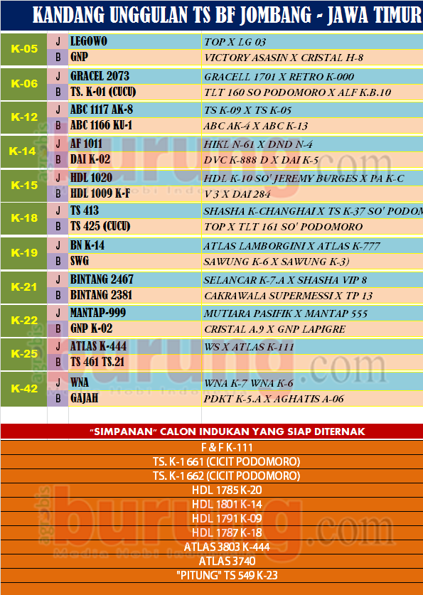 “Update trah indukan benar benar bongkar total dan semuanya baru dan pastinya trah basic dari Podomoro bagian penting dari breeding TS saat ini dan hasilnya sudah terbukti dan laris manis terjual ke kungmania di berbagai daerah. Dan juga saat ini saya juga berburu beberapa burung lomba seperti jawara bergelang ABC dan juga bergelang Bintang, keduanya sedang kita treatmen untuk menjadi jawara istimewa. Dan pastinya juga saya melihat saat ini aturan lomba & kinerja jurinya semakin berkualitas dan semakin fair play serta sekarang saya lihat suasana lomba semakin kondusif dan bisa menikmati lomba dengan senang dan tenang karena kinerja juri disiplin,” ucap H Iwan pemilik TS BF Jombang Jawa Timur