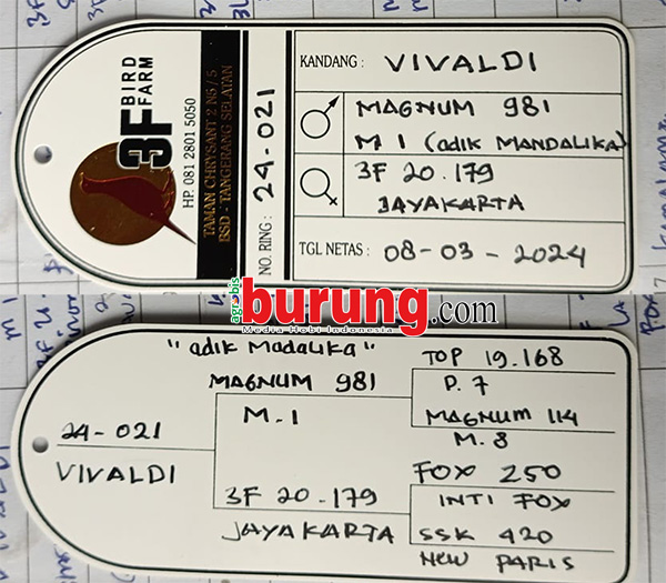 H. Sularno mengatakan bahwa 3 (tiga) ekor burung masing-masing yang sudah diboyong H Malelang Palu dan Hendry Wat Tasikmalaya adalah galur trah istimewa yang memang sudah dibuatnya dalam beberapa tahun terakhir. Di 3F K-Vivaldi (Magnum M-1 “Adik Mandalika X 3F K-Jayakarta) indukan Rivaldo ang di take over H Malelang memang burung istimewa sejak piyik sudah terlihat prospeknya dan mulai terlihat ketika mulai “mondok” di Jawa Timur yang akhirnya dibeli H Malelang.