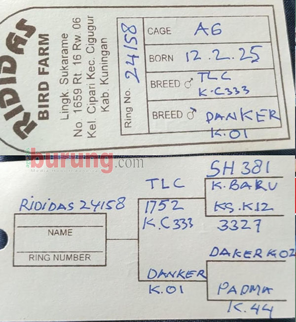 Sedangkan Harapan Baru adalah anak Rididdas BF Kuningan dari kandang A.6 dengan materi indukan jantan TLC C.333 dan betina Danker K.01A (Trah Baginda/adik Donkey). Penampilan Harapan Baru juga tak kalah menjanjikan. Berhasil menempel Nona Manis dipapan atas kelas piyik yunior yang persaingannya cukup ketat.