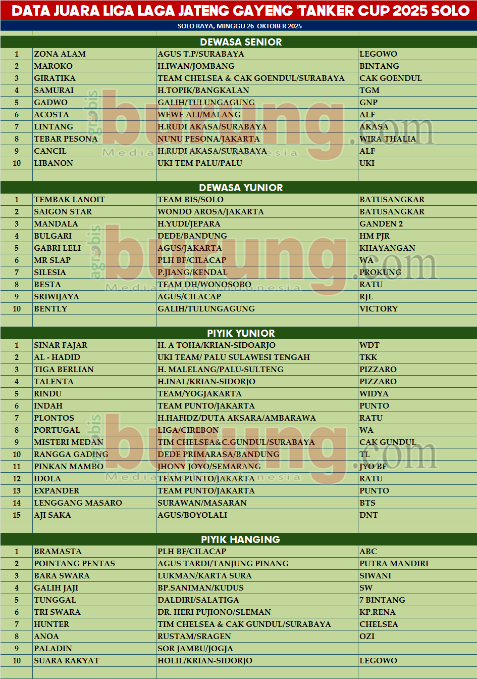 SOLO, agrobisburung.com – Gelaran Liga Laga Bintang Jateng Gayeng #7 bertajuk Tanker Cup 2025 di Lap. pengda Solo Raya, Gawanan Colomadu Karanganyar berlangsung seru dan tetap diserbu kungmania lintas blok. Cuaca dengan hembusan angin yang hadir sepanjang gelaran benar benar menguji mental tarung jago jago yang berlomba. Septian Holly mewakili panitia mengatakan bahwa gelaran kali ini sudah terjadwal di agenda pengwil Jateng sebagai seri Liga Jateng Gayeng 2025. “Terima kasih kepada Kungmanja dari luar Solo Raya baik itu Jateng, Jatim, Jabar dan DKI yang sudah berkenan hadir. Serta terima kasih kepada kru panitia dan pengurus pengda Solo Raya yang sudah support hingga pelaksaan liga dengan meriah dan sukses, ‘” ucap Septian Holly.